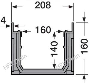 - Injected Polypropylene (P.P.) and Polycarbonate channel in black color (L 1000 * W 208 * H 160 mm)